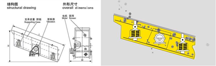 2、振動器采用軸承稀油潤滑、外置式塊偏心結(jié)構(gòu)。具有激振力大,軸承負(fù)荷小、溫度低,噪音小等特點(diǎn)。(軸承溫升小于35") 。